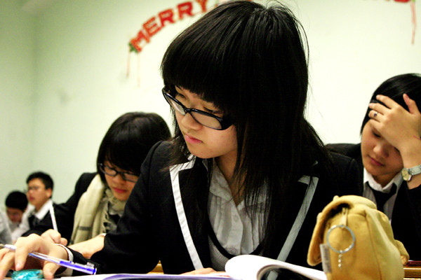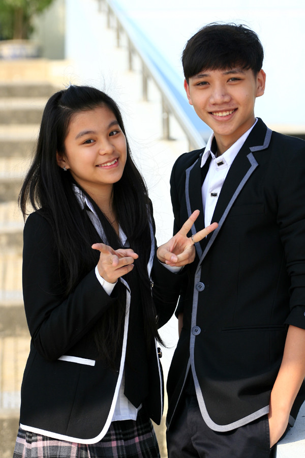 | Nếu như trang phục của các bạn nam là vest lịch lãm thì trang phục của các bạn nữ sinh trường phổ thông Newton lại là vest và váy ngắn kết hợp quần tất rất nổi bật |