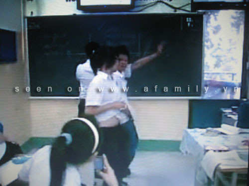Còn cô giáo Nguyễn Thị Loan, giáo viên chủ nhiệm lớp 10 ở một trường THPT dân lập có tiếng ở Hà Nội, khi xem xong đoạn clip này cũng rất bức xúc. Cô Loan cho rằng, đoạn clip với những hình ảnh phản cảm của các học sinh diễn ra ngay trên bục giảng giờ ra chơi trong lớp như vậy là không thể chấp nhận được và cần phải xem lại tư cách đạo đức của các học sinh.