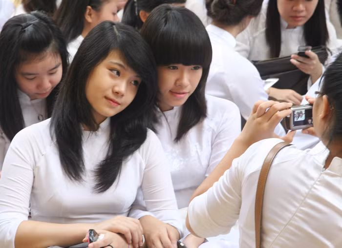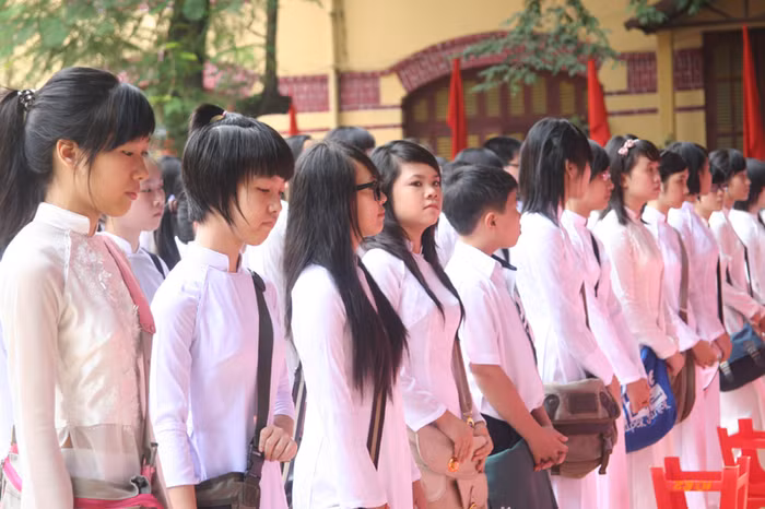 Nữ sinh Trần Phú HN thướt tha áo dài trắng ngày khai giảng
