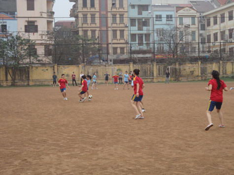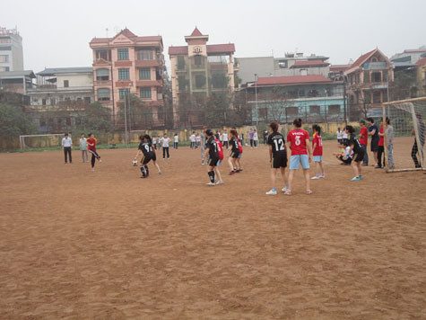 | Những trận đấu giao lưu như thế này ngoài giúp các bạn nữ thoải mái sau những buổi học căng thẳng, còn làm cho các bạn siết chặt tinh thần đồng đội với nhau hơn. |
