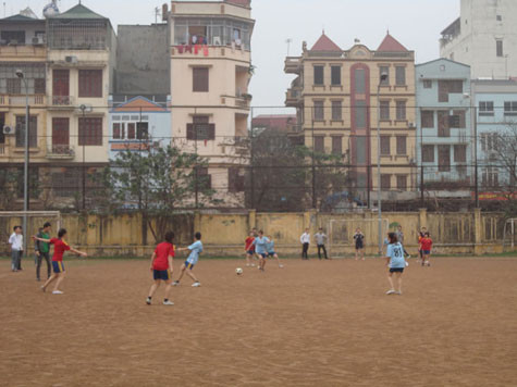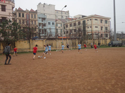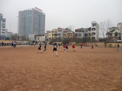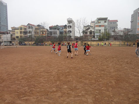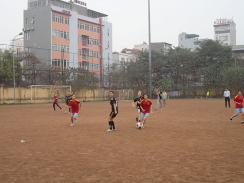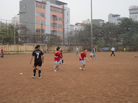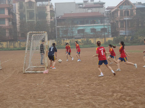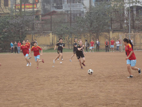 | Tuy kỹ thuật của các bạn nữ chưa tốt nhưng đó là những trận đấu thú vị, giao lưu chào đón ngày mùng 8/3. |