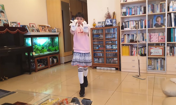 Cũng lấy cảm hứng Ở nhà học vui từ âm nhạc nhưng bạn nhỏ Hoàng Mỹ Anh, lớp 4 trường TH School thể hiện tài năng của mình vũ điệu rửa tay với “Ghen Cô Vi”