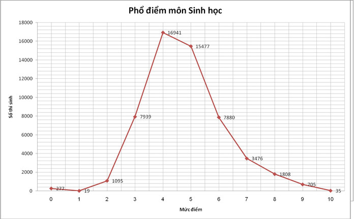 Dưới đây là phổ điểm từng môn thi:
