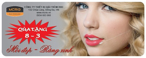 Nhân dịp ngày quốc tế phụ nữ 8/3 này, MCRIO dành tặng chị em nhiều món quà bất ngờ từ chương trình khuyến mãi “Môi đẹp, răng xinh” dành cho khách hàng cũ đã mua hàng và cả khách hàng mới sẽ mua hàng trong tháng 3 này.