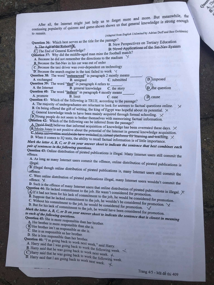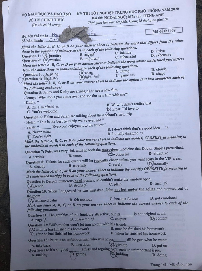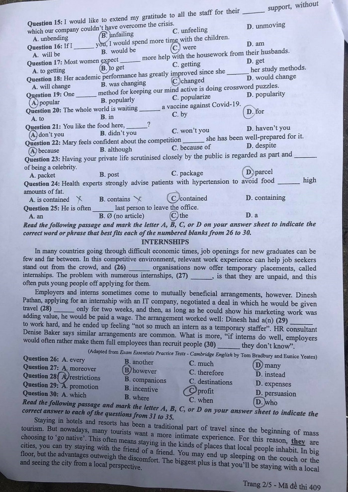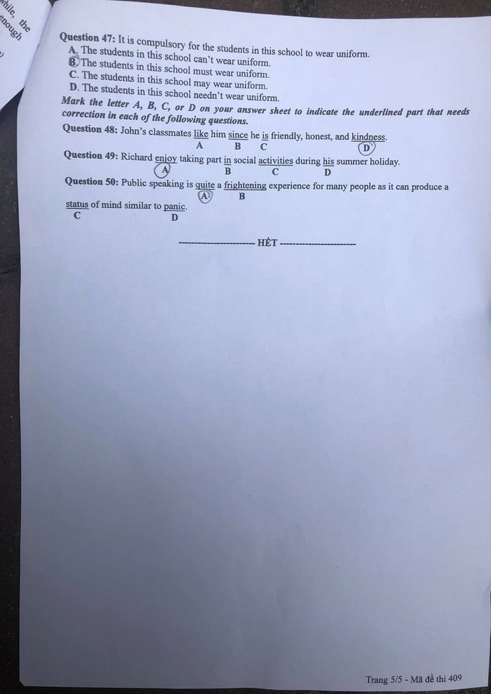 Thời gian làm bài thi môn Ngoại ngữ là 60 phút. Thí sinh bắt đầu làm bài lúc 14h30 phút. Cũng như các môn trắc nghiệm buổi sáng, đề thi môn Ngoại ngữ sẽ gồm 24 mã đề và 50 câu/mã.