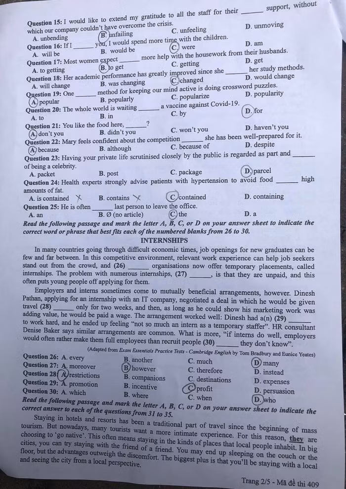 Sau đây là mã đề 409: