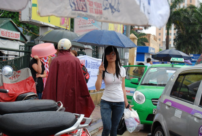 | Trời mưa nhưng lượng thí sinh về Hà Nội vẫn nhiều. |