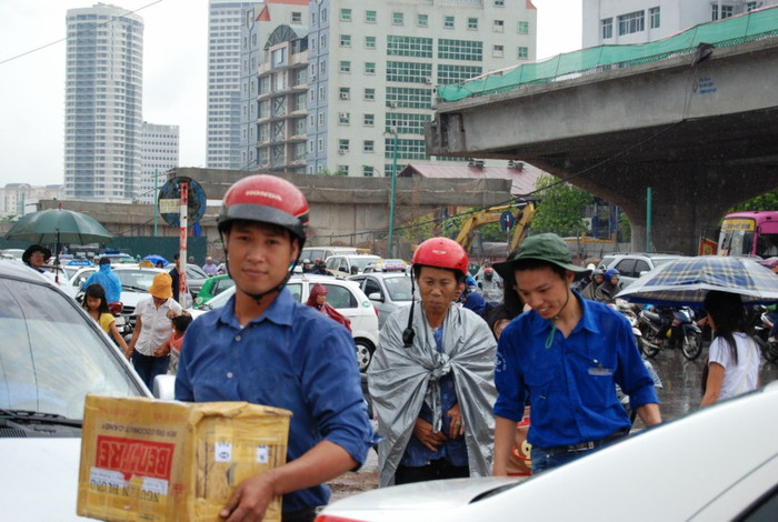 | Dù trờ mưa, vẫn có những người mưu sinh kiếm sống |