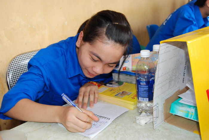 | Thanh niên tình nguyện vẫn hoạt động hăng say dưới trời mưa |