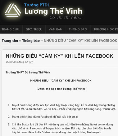Thực tế dư luận Hà Nội đang có những cách hiểu khác nhau về việc Trường THPT Dân lập Lương Thế Vinh (Hà Nội) vừa đưa ra văn bản “Những điều cấm kỵ khi lên Facebook” dành cho học sinh trong trường.