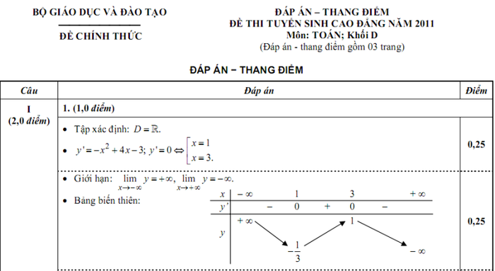 (GDVN) - Mời độc giả cùng tham khảo lại Đề thi-Đáp án môn Toán khối D hệ Cao đẳng năm 2011.