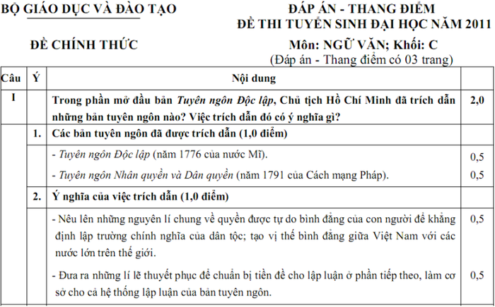 (GDVN) - Tham khảo các cách giải, những vấn đề trọng tâm trong Đề thi - Đáp án môn Văn khối C năm 2011.
