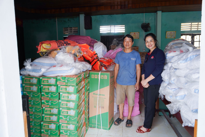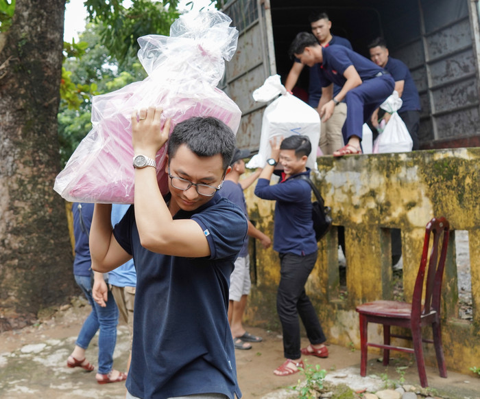Cụ thể, HIỆN VẬT: Hàng vạn cuốn sách giáo khoa (129 bao tải); hàng vạn bộ áo quần (311 bao tải); 5,7 tấn gạo; 5 thùng khẩu trang (5.000 cái/thùng); và nhiều loại nhu yếu phẩm khác (balo, áo phao, lương khô, thuốc chống dị ứng...).