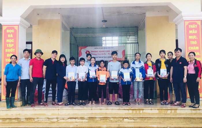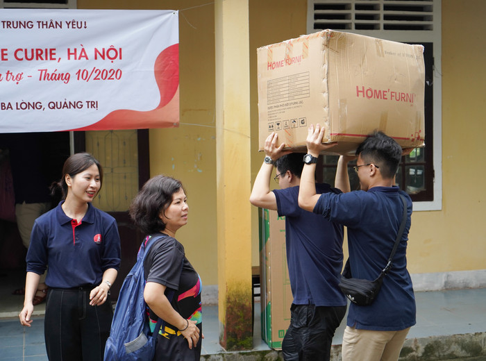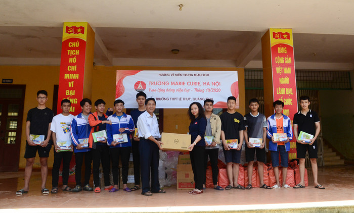 Ngày 28/10 cơn bão số 9 siêu mạnh đổ bộ vào Miền Trung, hai đoàn công tác đặc biệt của trường Marie Curie vẫn lên đường, một đoàn đi Quảng Bình, một đoàn đi Quảng Trị.