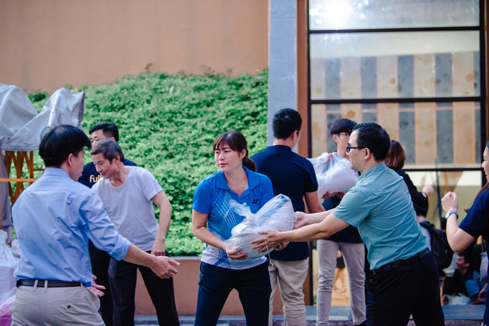 Chia sẻ với Tạp chí điện tử Giáo dục Việt Nam, thầy Nguyễn Xuân Khang cho biết, sau 5 ngày tiếp nhận hàng viện trợ, hàng trăm cán bộ, giáo viên, nhân viên và học sinh cẩn thận chọn từng cuốn sách giáo khoa, từng tấm áo quần lành lặn thơm tho... xếp gọn vào bao tải, bọc ngoài bằng túi nilon để không thấm nước. Hơn 20 tấn hàng sẵn sàng lên đường, hướng về Miền Trung thân yêu.