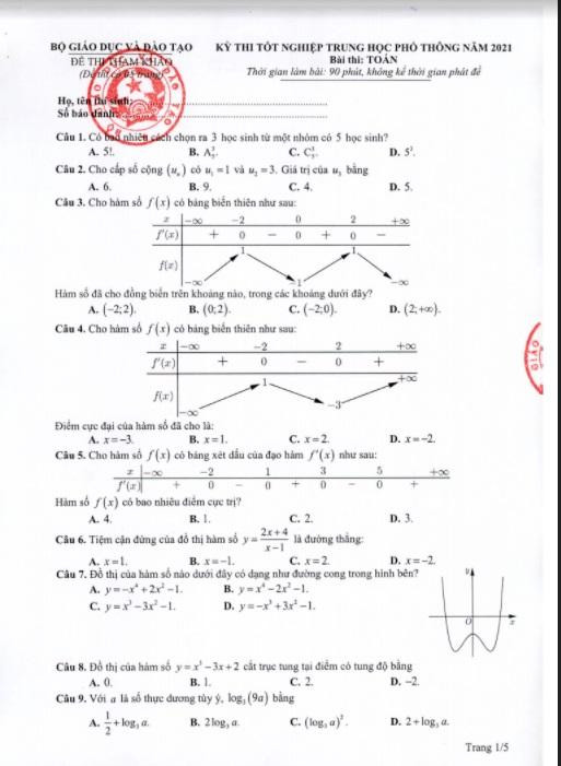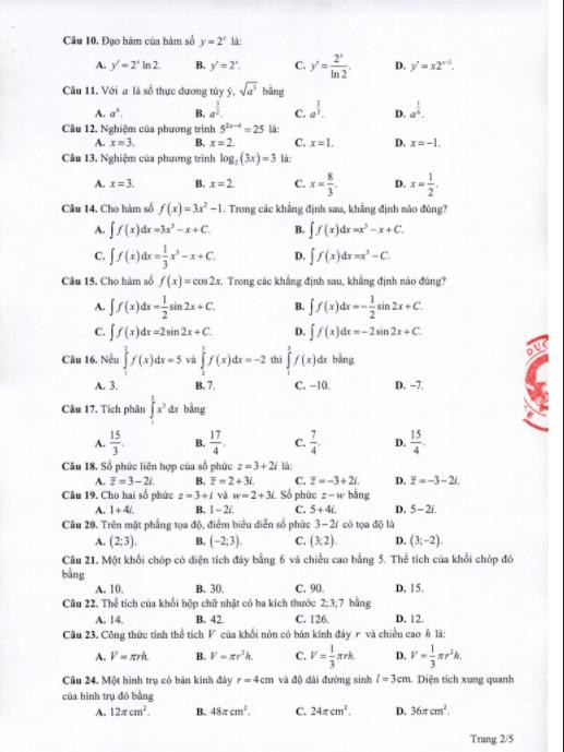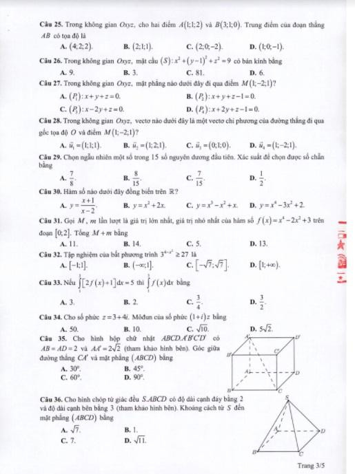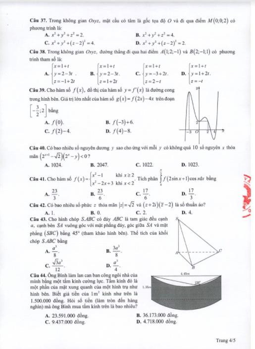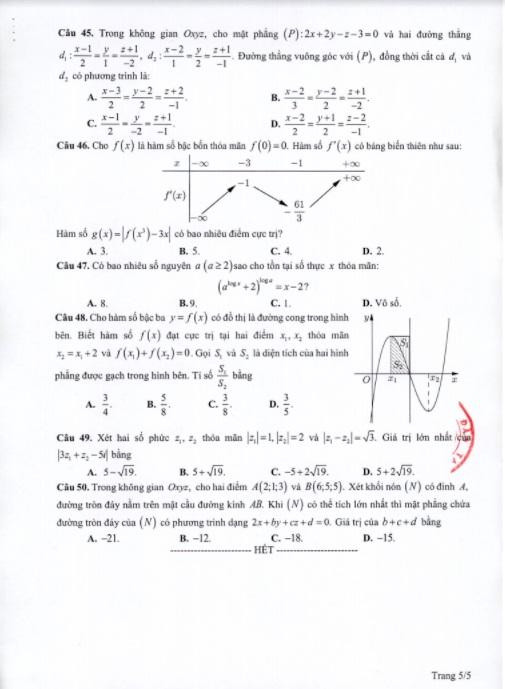 Trong đó, kiến thức lớp 12 bao gồm 45 câu (tương đương 9 điểm) còn lại 5 câu thuộc về kiến thức lớp 11 (dãy số, tổ hợp, xác suất, góc, khoảng cách).