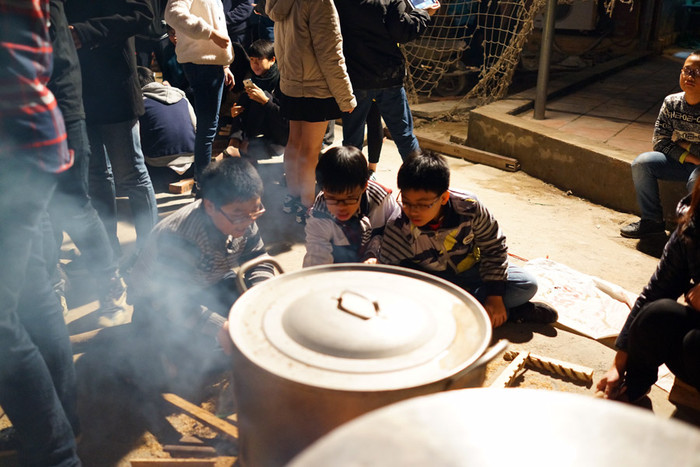 | Những nồi bánh chưng đầu tiên bắt đầu được nấu. |