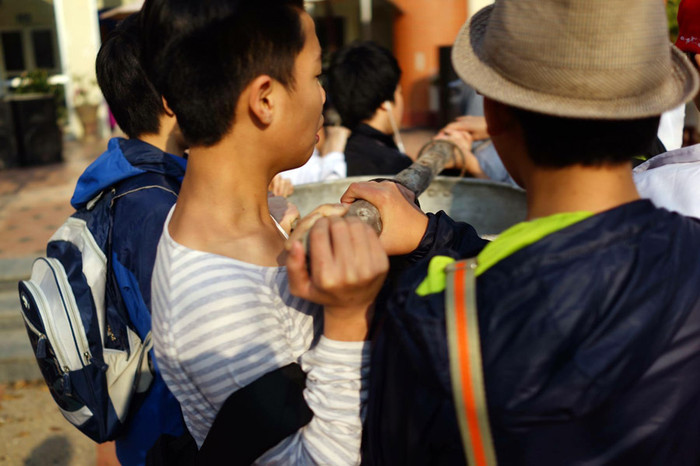 | Để nấu được những nồi bánh chưng to như thế này thì từng học sinh phải chuẩn bị nhiều công đoạn trước đó. |