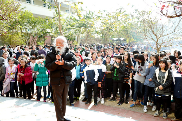 | Trực tiếp thầy Văn Như Cương xuống sân trường ngồi gói từng chiếc bánh với học trò của mình. |