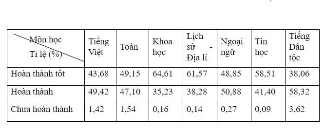 Nếu so với số liệu của 10 năm về trước, tỉ lệ học sinh yếu kém bậc tiểu học đã giảm đáng kể. Từ 5,7% yếu kém năm 2007 đến nay chỉ còn 1.42%.