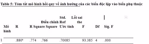 Theo hệ số mô hình trong bảng 6, phương trình Y = β0 + β1X1 + β2X2 + β3X3 + …… β4X4 trở thành;