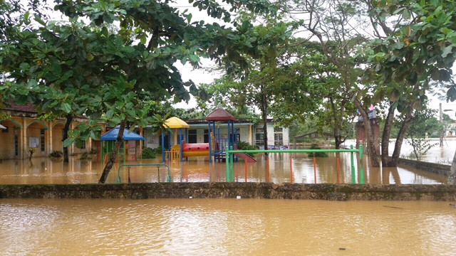 | Trường Mầm non Gia Phố vào thời điểm Hố Hô xả lũ, nước bao vây trường. |