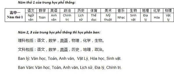 Ở phổ thông cơ sở học nhiều môn học cơ bản, còn trung học phổ thông thì phân ban để tạo điều kiện cho học sinh tập trung học phân ban chuyên sâu (coi như dự bị đại học tại phổ thông).