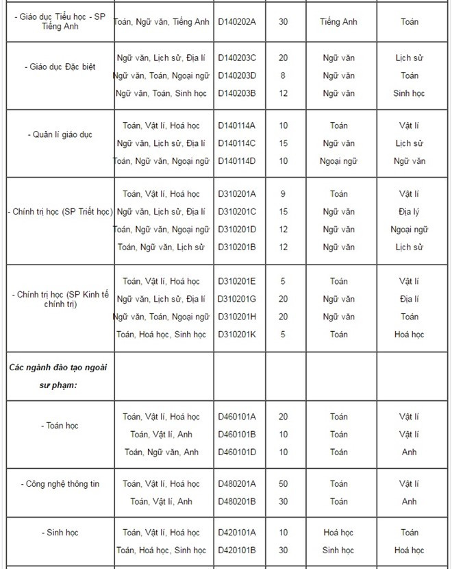 | Tiêu chí xét tuyển của Đại học Sư phạm Hà Nội (Ảnh: Thùy Linh) |