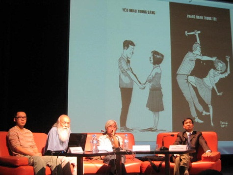 Xoay quanh nội dung thảo luận về ngôn ngữ của giới trẻ ngày nay, và việc đưa những “sáng tạo” ấy vào sách, Hội trường lớn của trung tâm văn hóa Pháp đã chặt cứng người và bắt đầu nóng lên ngay khi buổi tọa đàm bắt đầu.