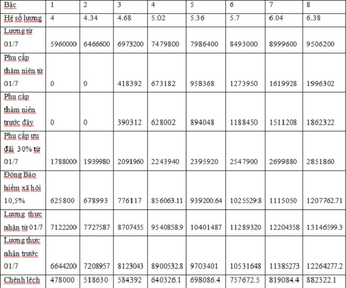 Trong bài viết trước, tôi đã nêu chi tiết mức lương thực nhận của giáo viên khi tăng lương từ 01/7 của giáo viên ở hạng thấp nhất của giáo viên mầm non, tiểu học, trung học cơ sở, trung học phổ thông.