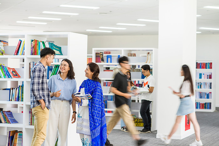 Một trong những điểm nhấn ấn tượng nhất của VinUni là thư viện kĩ thuật số rộng đến 4.000m2, hoạt động 24/7. Đây được coi là trái tim của Đại học VinUni, là nơi lý tưởng cho việc học nhóm, nghiên cứu và bàn thảo các dự án khởi nghiệp.