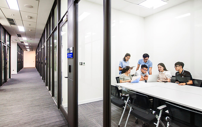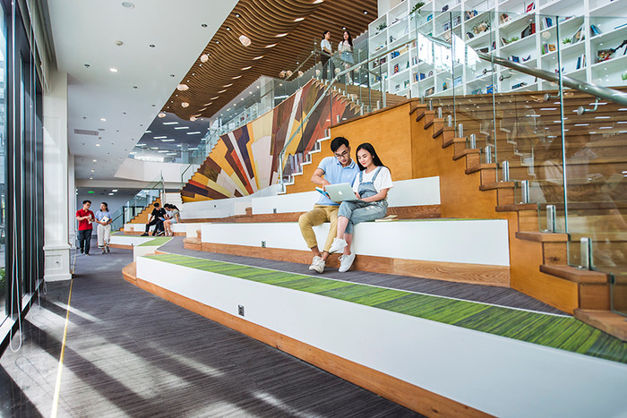 Ngay cả khi chưa tới giờ lên giảng đường, sinh viên VinUni vẫn có thể tới các phòng làm việc trong trường để học hoặc thảo luận nhóm.