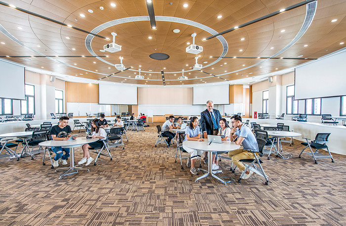 Giảng đường thông minh TBL (Team based learning) được thiết kế linh hoạt, với nhiều ánh sáng và không gian mở nhằm khơi dậy sự hợp tác, sáng tạo của giảng viên và sinh viên. Theo nhiều nghiên cứu, việc đưa được tối đa ánh sáng tự nhiên vào giảng đường sẽ giúp tăng khả năng nhận thức và sự linh hoạt của não bộ lên tới 70%.