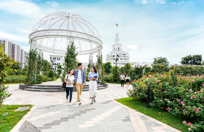 Thong thả hít thở không khí trong lành và trò chuyện giữa vườn hồng đẹp như mơ là một “đặc quyền” của sinh viên VinUni.