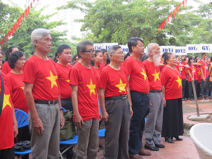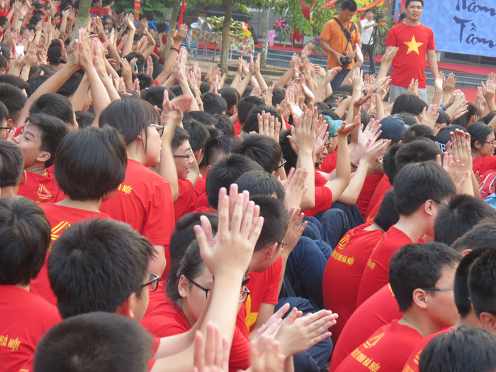 Tôi đề nghị mọi người cùng giơ cao bàn tay phải của mình và đặt lên lồng ngực bên trái… Chúng ta sẽ cảm nhận tiếng đập của trái tim mình, 1 trong 90 triệu trái tim Việt Nam, tiếng đập rộn ràng dưới sắc vàng của ngôi sao năm cánh.