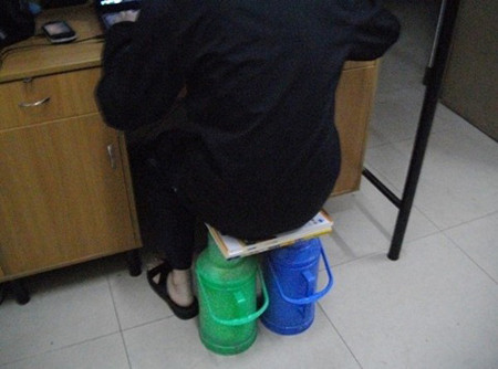 | Thay ghế bằng bình đựng nước |