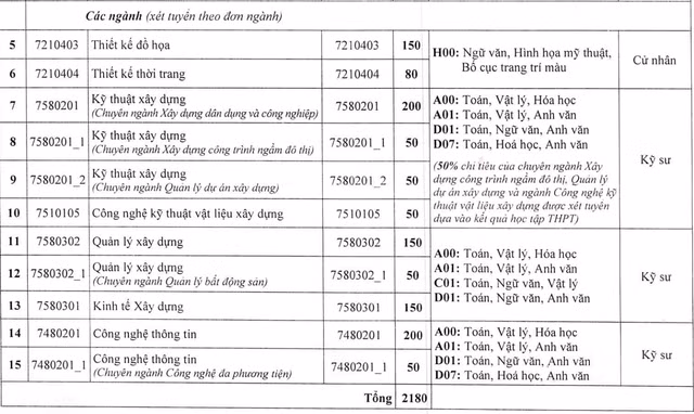 Thí sinh trúng tuyển các ngành Kiến trúc, Xây dựng dân dụng và công nghiệp nếu có nguyện vọng và đáp ứng được các điều kiện về điểm xét tuyển, trình độ ngoại ngữ theo quy định của nhà trường sẽ được tham gia xét tuyển vào các lớp K+ (ngành Kiến trúc) hoặc X+ (ngành Xây dựng dân dụng và công nghiệp).