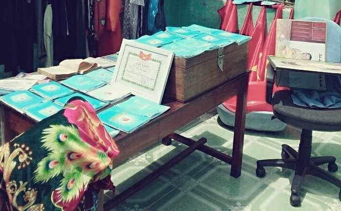 | Sau bão, việc làm đầu tiên của các giáo viên là chạy tới mang sách vở, bài kiểm tra của học trò ra phơi (Ảnh cô Hiền cung cấp) |