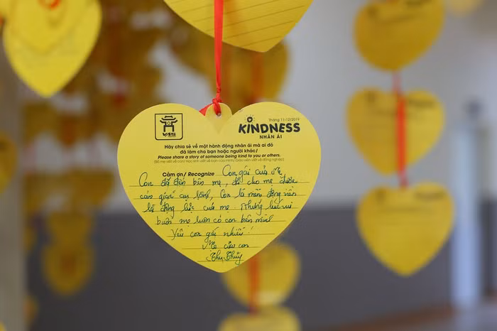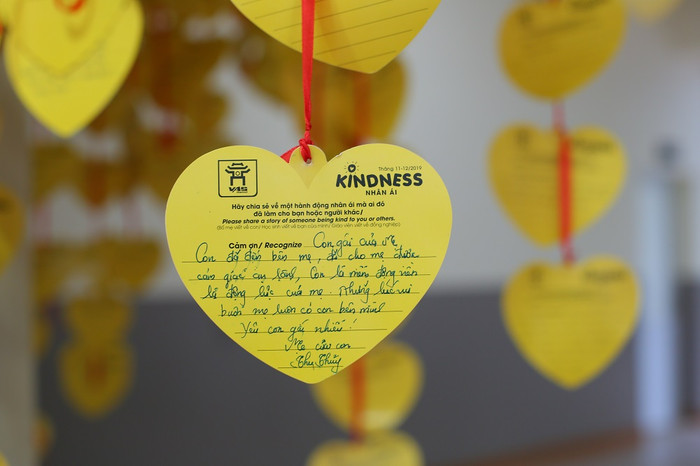 Để chào mừng ngày Quốc tế Nhân ái, một Cây Nhân ái khổng lồ đã được thầy trò trường Việt-Úc Hà Nội thực hiện. Đây là nơi để thầy trò nhà trường cùng phụ huynh học sinh chia sẻ những câu chuyện nhỏ về việc tốt và hành động nhân ái xung quanh mình.
