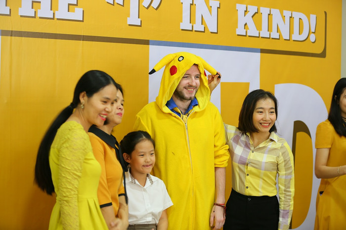 | Các giáo viên quốc tế và Việt Nam cùng chụp ảnh với học sinh bên Cây Nhân ái. |