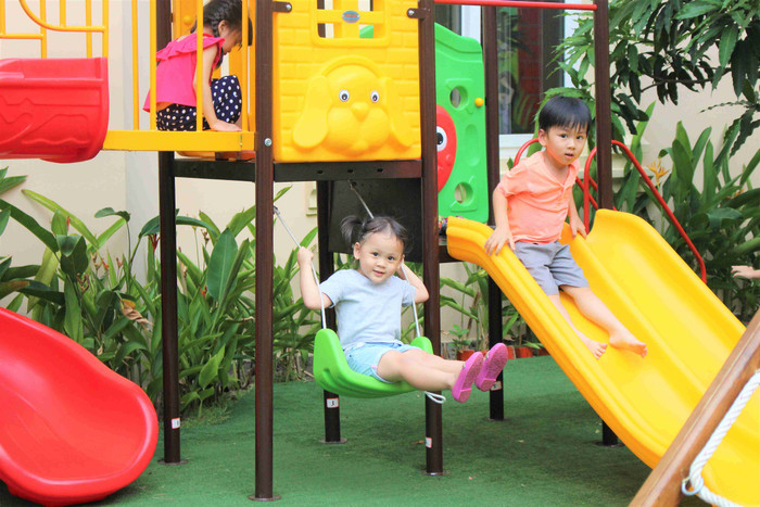 Hệ thống phòng học, khuôn viên và trang thiết bị được đầu tư thiết kế xây dựng theo đúng chuẩn quốc tế, được thiết kế kĩ lưỡng, tràn đầy ánh sáng tự nhiên, bảo sức khỏe cho trẻ.