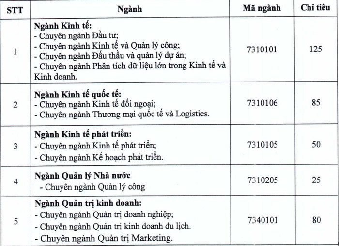 Ngành, chuyên ngành, chỉ tiêu tuyển sinh như sau: