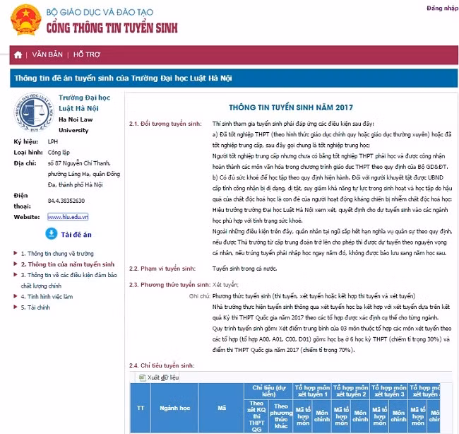- Thông tin về Đề án tuyển sinh của các cơ sở đào tạo đại học và các trường cao đẳng sư phạm như thông tin các ngành tuyển sinh năm 2017, điều kiện đảm bảo chất lượng, phương thức xét tuyển, điều kiện xét tuyển thẳng…