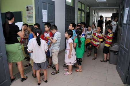 Buối sáng, các thí sinh khối 2 và khối 3 làm bài thi môn Tiếng Việt từ 8h15 – 9h; môn Toán từ 9h25 – 10h10; môn Tiếng Anh từ 10h30 – 11h05. Buổi chiều, khối 1 và khối 4 làm bài thi môn Tiếng Việt từ 14h10 đến 15h; môn Toán từ 15h25 – 16h10; môn Tiếng Anh từ 16h20 – 17h05.