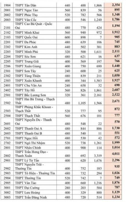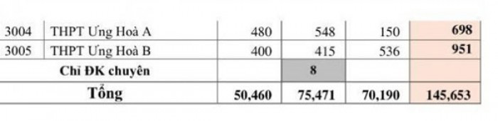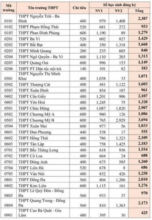 Theo đó, tổng chỉ tiêu đăng ký vào lớp 10 không chuyên trường THPT công lập trên toàn thành phố là 50.460, số lượng học sinh đăng ký lên tới 145.653, trong đó tổng số nguyện vọng 1 là 75.471, nguyện vọng 2 là 70.190.