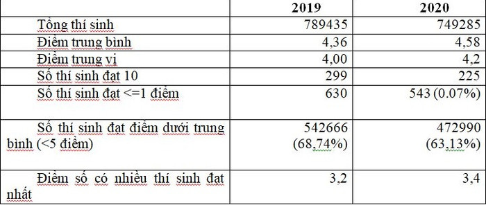 Kết quả so sánh kết quả thi trung học phổ thông môn tiếng Anh năm 2019 và 2020 như sau: