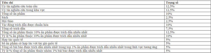 Trong đó, chỉ những trường đại học có 1.500 bài báo được xuất bản năm 2013 đến 2017 mới được xem xét; đồng thời uy tín về nghiên cứu do Clarivate Analytics InCites thực hiện.