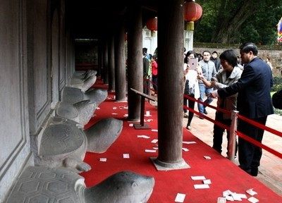 Kể ra thì các cụ ngày xưa cũng thật hóm, rùa được đặt vào hàng thứ ba trong tứ quý: long ly, quy, phượng. Thế nhưng các loại rùa đều được tận dụng để kê chân, đỡ cột, phổ biến là chân cột đình, chân bia, để ngày nay lũ trẻ đi thi tranh thủ sờ đầu một tí, may mắn chả thấy đâu nhưng được cái yên dạ, thêm chút tự tin. Dẫu sao văn hóa “sờ đầu rùa” cũng cho thấy cái sự “phi văn hóa” của người “sờ” và sự khinh bạc đối với rùa chỉ có ở Việt Nam.