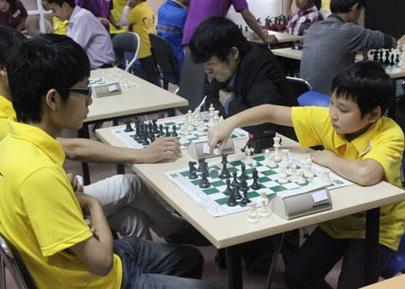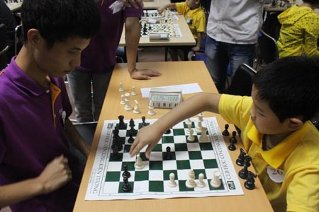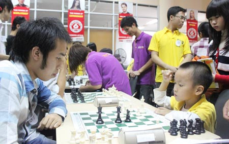 | Mặc dù đấu với những đối thủ lớn tuổi, có tiếng nhưng các "kiện tướng" nhỏ tuổi vẫn rất bình tĩnh và tự tin để so tài |