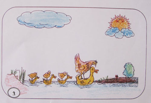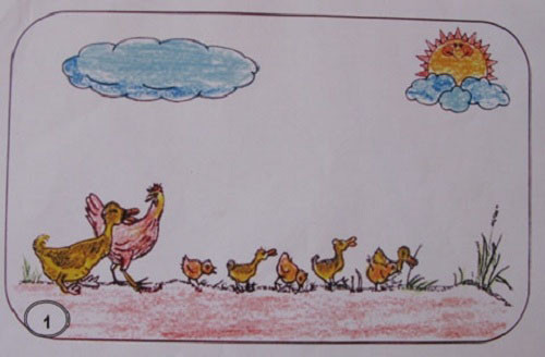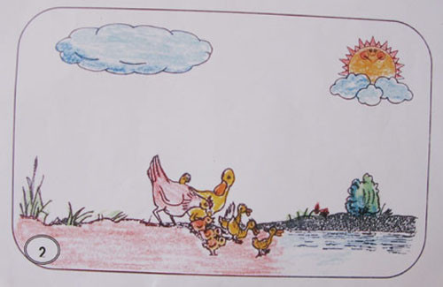 Dựa trên 3 bức tranh này học sinh phải tự kể một câu chuyện ngắn.
